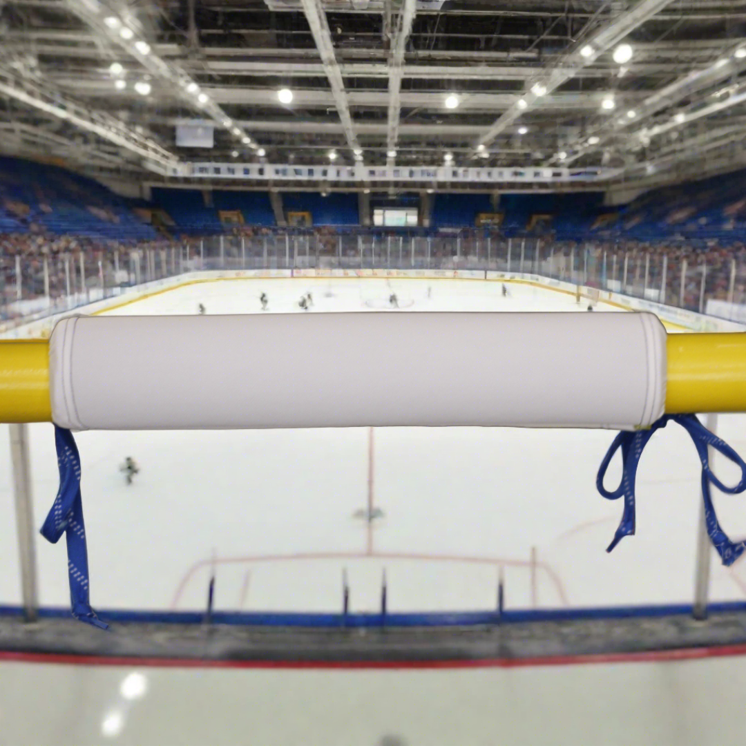 "We should cut up a pool noodle and strap it to the rails," one of us said, while watching their kids at their first hockey practice of the season.